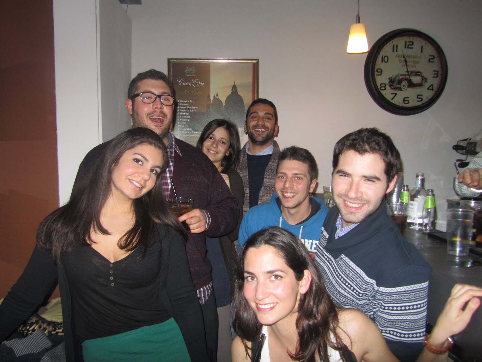 Llegamos a Casa Fagioli para dejar las cosas y llega su primer encontronazo con la realidad Erasmus: la fiesta de ayer se nos fue totalmente de las manos y no nos ha dao tiempo a ninguno de limpiar nada. Salimos de la pocilga de mi casa a hacer un aperitivo al Minerva Lounge Bar. SÍ, DE SIBARITA Y TÓ COOL, PORQUE HABÍA HASTA QUE RESERVAR. Por 7 € nos ponemos como el kiko (el tal kiko éste tenía que ser una jodida bola de grasa). Después vamos al Black Bull, bar que se caracteriza por poner jarras de cerveza estilo Oktoberfest por 5 €. Me siento entre mis amigas y la visita de Irene a la que martirizo a mi manera hasta que me odia. La cosa se anima poco a poco, hasta tal punto de que me veo solo en una mesa con 20 mujeres. Y no, no es una ventaja competitiva: ninguna acabó en mi cama. En el Raise mis amigas conocen cómo se hace la famosa Fragola, y concretamente, a la poderosa mamma Fragola. Después acabamos la noche en casa de 3 andaluces, uno de ellos Dito del que no sé si os he hablado, pero que es un maldito personaje que siempre acaba hecho peazos.